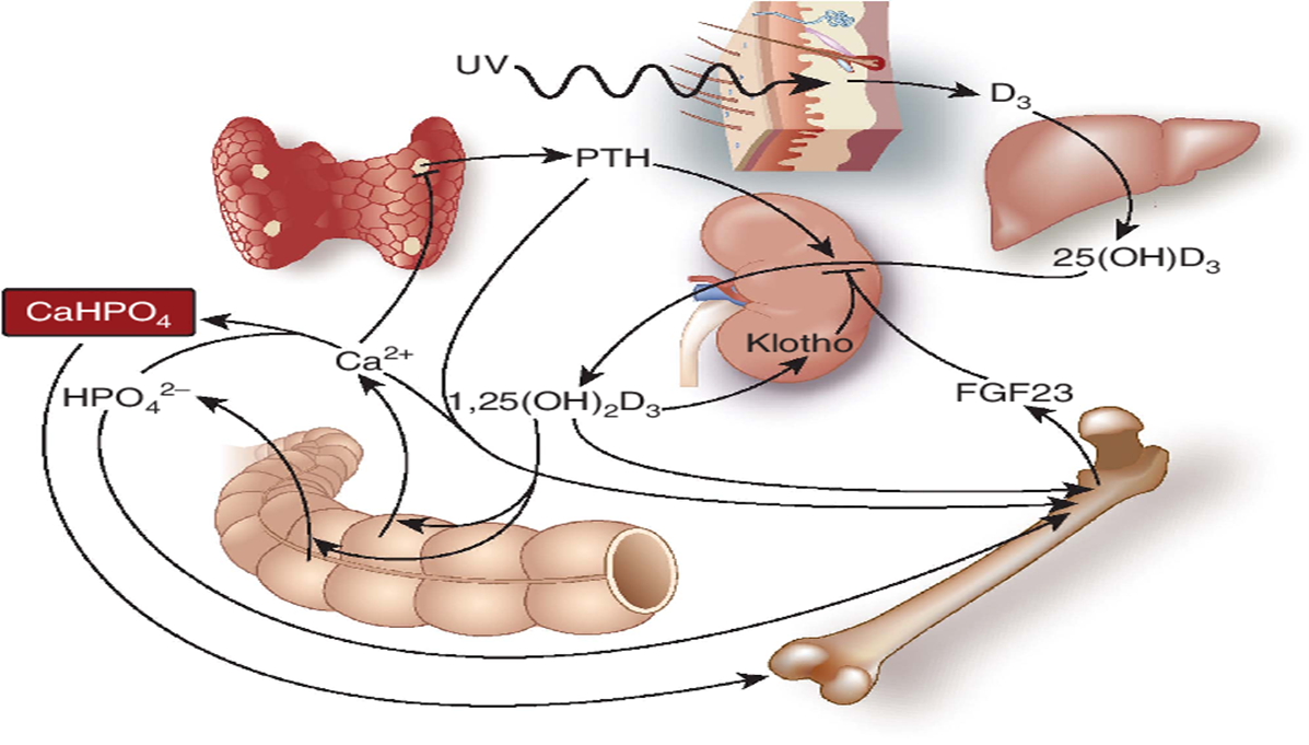 Paratiroid bezi tarafından salgılanan paratiroid hormonu (PTH) temel olarak kan kalsiyum düzeyini düzenlemekte, artırmaktadır. Kan kalsiyumu organların (kas, kalp ve beyin vb.) çalışmasında stratejik görevleri vardır. Yüm vücuttaki kalsiyumun %98 kemiklerde bulunmaktadır. Sadece %1 kanda bulunur. Kan kalsiyum düzeyin organların düzenli çalışmasını etkilediğinden Paratiroid hormonu da kan kalsiyum düzeyini dinamik olarak düzenlemektedir. PTH nin etkisi kemiklerden kalsiyum salınmasına, bağırsaklardan vit..D ile kalsiyum emilmesine ve böbreklerden kalsiyum tutulmasına sağlamaktadır. Bu şekilde kan kalsiyum durumunu ayarlamaktadır. Bu düzenlemede vit. D olumlu etkisi olmaktadır.